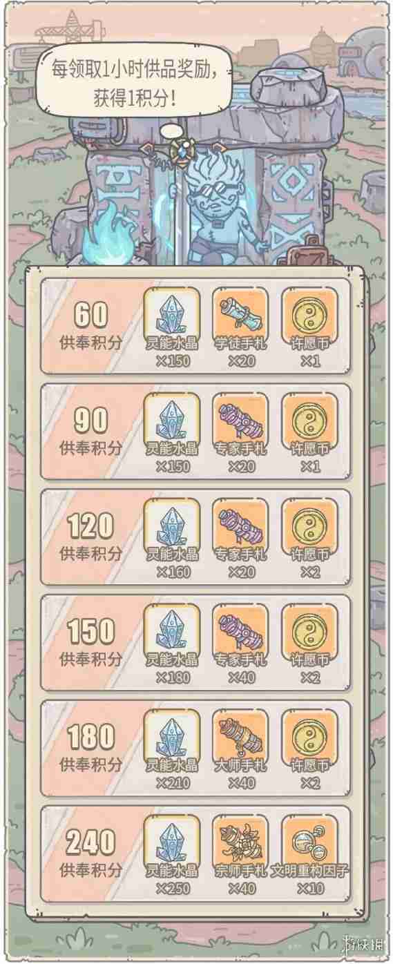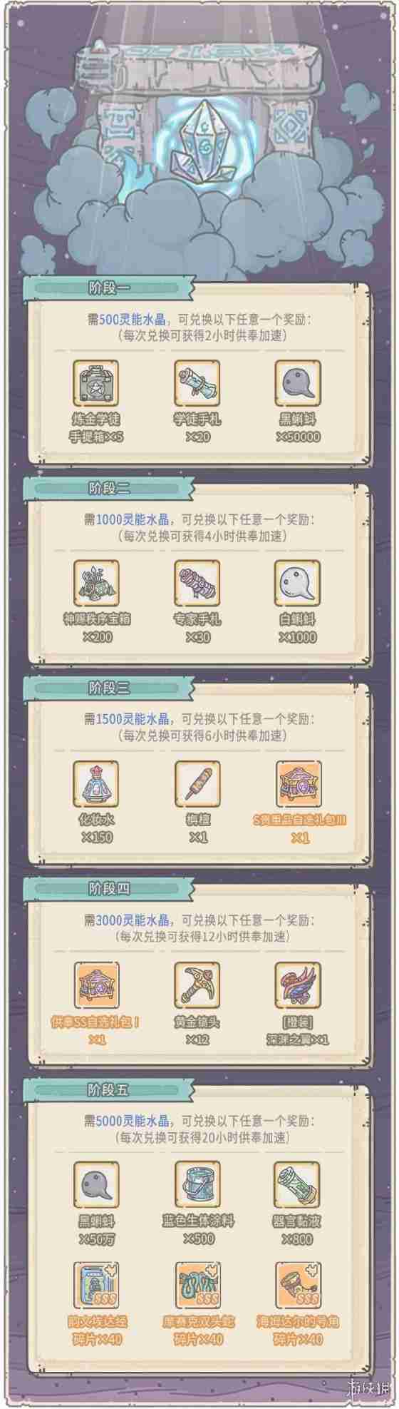 活动期间,消耗供奉加速(小时),可获得以下奖励: