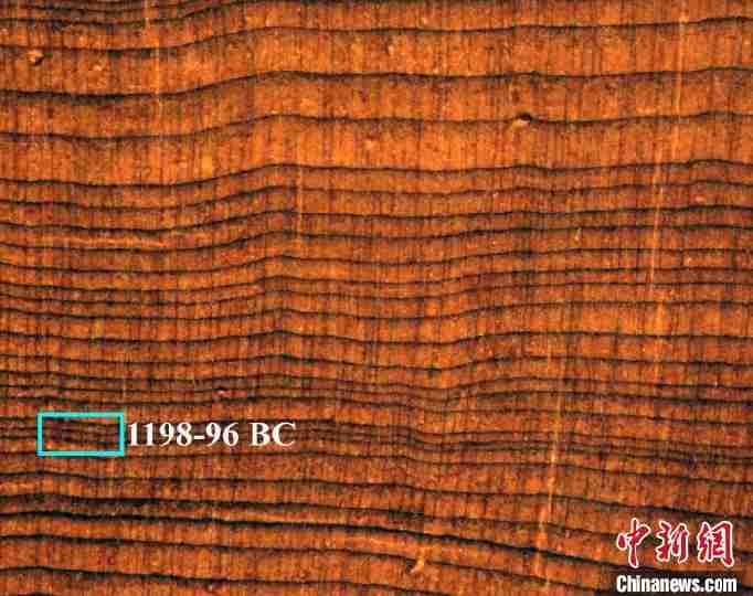 安纳托利亚中部挖掘地发现的木样本,对取样区域进行了扫描(图片来自康奈尔大学年轮实验室)。 施普林格·自然 供图