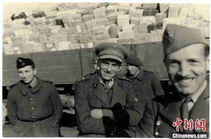 1942年,第二次世界大战期间拘于德国境内的战俘。照片中,他们站在满载红十字会包裹的卡车前。 ICRC供图