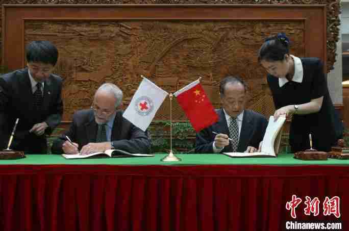 2005年,ICRC前主席克伦贝格尔与时任中国外交部长李肇星就该机构在北京设立东亚地区代表处签署协议 Natalie Behring/ICRC供图