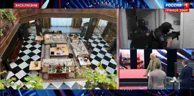 据报道,“俄罗斯1”电视频道在“60分钟节目中”展示了普里戈任办公室和家中的画面,执法人员在那里发现了现金、假发、护照、兵器等,房屋的院子里还停放着一架小型直升机。